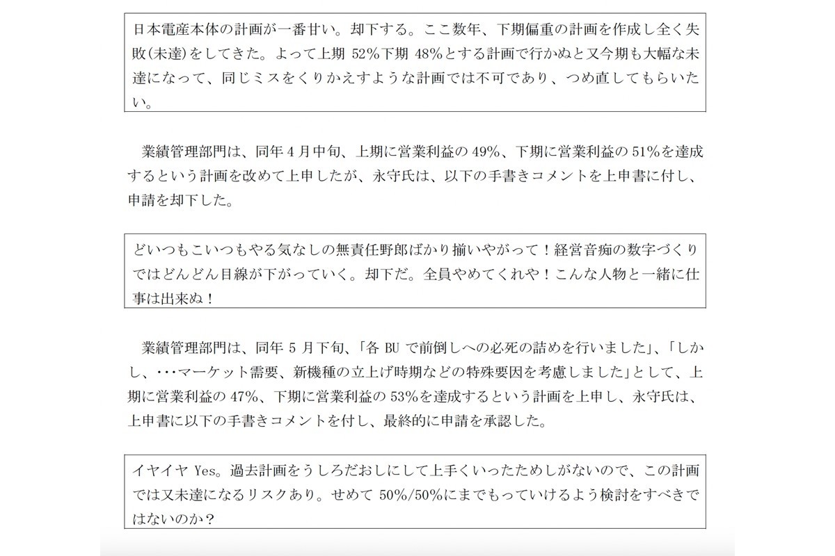 女性自身TOP > 国内 > 社会 > パワハラ > 「赤字は罪悪である」ニデック・永守氏 解雇を示唆、大勢の前で罵倒…報告書で明かされた“異常なパワハラ実態”に「頭おかしくなる」とネットドン引き 「赤字は罪悪である」ニデック・永守氏 解雇を示唆、大勢の前で罵倒…報告書で明かされた“異常なパワハラ実態”に「頭おかしくなる」とネットドン引き 記事投稿日:2026/03/05 06:00 最終更新日:2026/03/05 06:00 『女性自身』編集部 ニデック創業者の永守重信氏(写真:時事通信) 3月3日、世界的な総合モーターメーカー「ニデック(旧日本電産)」が不正会計をめぐる第三者委員会の調査報告書を公表。創業者の永守重信氏(81)による常軌を逸した業績プレッシャーの実態が明らかになった。報告書は、一連の会計不正の最大の原因を「過度な業績プレッシャーの存在」と認定。非現実的な目標設定と、永守氏をはじめとする経営幹部による「苛烈ともいえる強いプレッシャー」が日々... 記事の続きを読む 出典元:WEB女性自身 【関連画像】 【関連記事】 【写真あり】《降格処分から3カ月》テレ朝「ナスD」が“左遷”されていた…パワハラ&不正受領で「完全転落」へ 【写真あり】「普通にクビ」とスクール生を激詰め…“ゾス系”ベンチャー企業の「詰問動画」が“パワハラ”と物議、広報が明かした「公開の意図」 【写真あり】「死者を冒涜するな!」斎藤元彦知事 “パワハラ認定”後初の定例会見で記者が怒りの追及…公用PCの中身言及に怒号 関連カテゴリー: 国内 関連タグ: ニデックパワハラ創業者社会 こちらの記事もおすすめ 国内 もっと見る “安全装置”のないエレベーターが全国に47万台も…閉じ込め、衝突事故が増加の... 2026/03/05 06:00 国内 「赤字は罪悪である」ニデック・永守氏 解雇を示唆、大勢の前で罵倒…報告書で明... 2026/03/05 06:00 国内 《“出来レース”の指摘も》ラサール石井氏 内紛続きの社民党首選への出馬にネッ... 2026/03/05 06:00 国内 「失礼な物言い」「SANAE TOKEN」運営の溝口氏 関与全否定した高市首... 2026/03/04 19:30 国内 「提案させていただいた」と豪語の京大教授 高市首相が関与否定の「SANAE ... 2026/03/04 17:10 国内 「憧れて髪型も真似していました」林総務大臣 公開した約30年前の“ビートルズ... 2026/03/04 14:10 国内 人気タグ 黒柳徹子田久保眞紀寺島進aespaakb2025年上半期ベストスクープBreaking Down=LOVED.O.ADHDBIGBANGBABYMETAL カテゴリー 芸能 エンタメニュースインタビュー 皇室国内海外 海外ニュース韓流ニュース スポーツライフ 美容健康暮らしグルメ 地域コラム占い