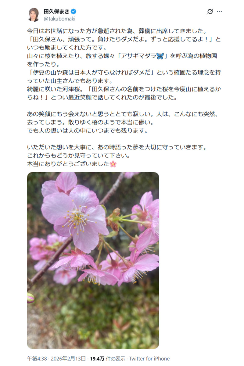 女性自身TOP > 国内 > 社会 > 田久保眞紀 > 「もう詰みだね」の批判も非表示に…田久保眞紀被告 在宅起訴後もダンマリのなか密かにしていた“アンチ対策” 「もう詰みだね」の批判も非表示に…田久保眞紀被告 在宅起訴後もダンマリのなか密かにしていた“アンチ対策” 記事投稿日:2026/04/07 16:40 最終更新日:2026/04/07 16:40 『女性自身』編集部 田久保眞紀氏(写真:時事通信) 3月30日、有印私文書偽造・同行使と地方自治法違反の罪で在宅起訴された静岡県伊東市の田久保真紀前市長(56)。市長在職中の学歴詐称疑惑をめぐり、一挙手一投足に注目が集まっている。「田久保氏の最終学歴は『東洋大学法学部卒業』とされていましたが、実際には除籍されていたことが判明しました。起訴状によれば、田久保氏は昨年5月29日から6月4日までの間に“ニセ”の卒業証書を自作。... 記事の続きを読む 出典元:WEB女性自身 【関連画像】 【関連記事】 【写真あり】「もういい加減にして欲しい」学歴問題の田久保元市長の“支援者”を伊東市議が断罪…嘘を重ねた“田久保劇場”に苦言 【写真あり】3週間行方不明だった中学生、空き家の煙突内から遺体で発見 【写真あり】「エグすぎ」羽賀研二と共に逮捕された“超大物”に広がる衝撃「稀代のワルより悪そう」 関連カテゴリー: 国内 関連タグ: SNS対策田久保眞紀社会 こちらの記事もおすすめ 国内 もっと見る 「独裁じゃないか」社民・福島みずほ党首 質問に怒りのマイク叩き置き、大椿氏の... 2026/04/07 16:50 国内 「もう詰みだね」の批判も非表示に…田久保眞紀被告 在宅起訴後もダンマリのなか... 2026/04/07 16:40 国内 「赤紙かと怖くなりました」福岡市が18歳と22歳の個人情報を自衛隊に提供して... 2026/04/07 16:00 国内 「言い訳に使われたとも取れる」高市首相の衆議院解散発表の遅れは“震災の追悼”... 2026/04/07 06:00 国内 「体調崩さないか心配」名産地・兵庫での「わんこほたる選手権」優勝者は186匹... 2026/04/06 19:45 国内 「まるでコント」社民党・新党首会見での“ブチギレ“にネット呆然…52歳“元議... 2026/04/06 17:30 国内 人気タグ 坂口杏里中居正広長谷川京子billboard JAPANAAA3蜜AFTERSCHOOL2000年代BeeTVBoom TriggerBENIApple カテゴリー 芸能 エンタメニュースインタビュー 皇室国内海外 海外ニュース韓流ニュース スポーツライフ 美容健康暮らしグルメ 地域コラム占い