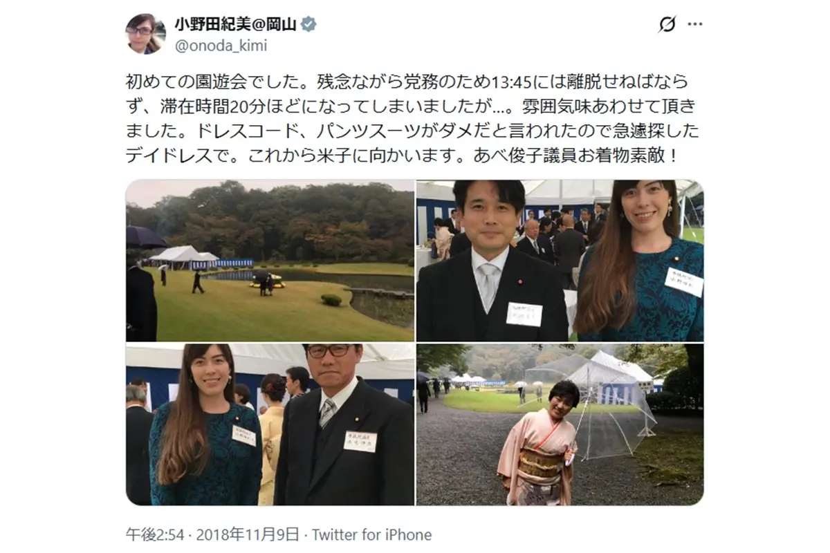 女性自身TOP > 国内 > 政治 > 小野田紀美 > 「悪目立ちしてしまった」小野田紀美氏 園遊会での“全身真っ赤コーデ”が物議…ベテラン皇室担当記者が指摘する“配慮不足” 「悪目立ちしてしまった」小野田紀美氏 園遊会での“全身真っ赤コーデ”が物議…ベテラン皇室担当記者が指摘する“配慮不足” 記事投稿日:2026/04/22 16:00 最終更新日:2026/04/22 17:34 『女性自身』編集部 小野田紀美経済安全保障担当大臣(写真:時事通信) 《昨日、好天の中、#園遊会。毎回、素晴らしい機会に感謝します》4月18日、Xでこうつづったのは赤沢亮正経済産業相。17日に東京・元赤坂の赤坂御苑で春の園遊会が開催され、出席したことを報告した。投稿では、岸田文雄元首相夫妻、小泉進次郎防衛相とジョージ・グラス駐日米国大使らと記念撮影した4枚の写真も公開。だが、そのうちの1枚に収められていた小野田紀美経済安全保障相(43)の... 記事の続きを読む 出典元:WEB女性自身 【関連画像】 【関連記事】 【写真あり】「目立ちすぎ」と波紋を呼んだ小野田氏の“全身真っ赤コーデ” 【写真あり】“全身真っ赤コーデ”で園遊会に出席した小野田紀美氏 【写真あり】小野田紀美氏が園遊会で着用したドレス一式 関連カテゴリー: 国内 関連タグ: ファッション園遊会小野田紀美政治 こちらの記事もおすすめ 国内 もっと見る 「悪目立ちしてしまった」小野田紀美氏 園遊会での“全身真っ赤コーデ”が物議…... 2026/04/22 16:00 国内 「“キャー”という悲鳴が…」東京ドームシティ 20代女性作業員が遊具に挟まれ... 2026/04/22 06:00 国内 《辺野古転覆事故》「非道な言葉を使う教育者」国民民主議員が激怒…校長の“言葉... 2026/04/22 06:00 国内 「直接の謝罪、弔電、何一つなかった」辺野古事故 遺族が明かした運航団体の“不... 2026/04/21 18:05 国内 「かなりがっかり」ネット唖然…小野田大臣 園遊会での“服装騒動”でつい漏らし... 2026/04/21 17:40 国内 《クマの目撃情報が過去1カ月で830件超!》「飢餓状態だからではない」研究チ... 2026/04/21 12:00 国内 人気タグ 多部未華子小野田紀美愛子さまBoys Republic2NE1bayfm7 MEN 侍Breaking DownBUMP OF CHICKENATSUSHIAdoBABYMETAL カテゴリー 芸能 エンタメニュースインタビュー 皇室国内海外 海外ニュース韓流ニュース スポーツライフ 美容健康暮らしグルメ コミックコラム占い