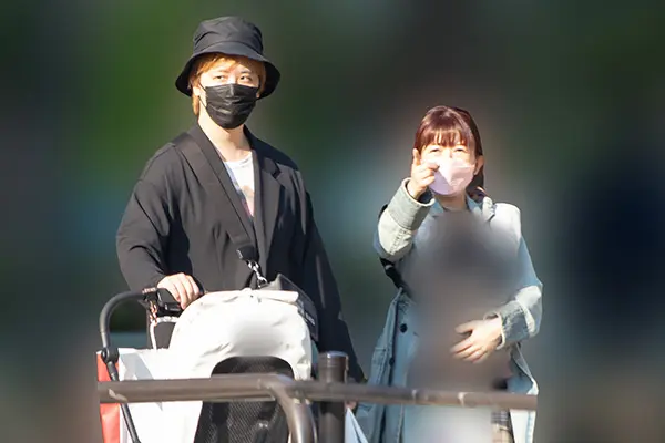 22年5月、娘を連れて散歩する祐太朗と牧野夫妻
