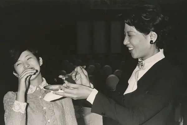 和田アキ子からケーキを食べさせられる現役時代の百恵さん