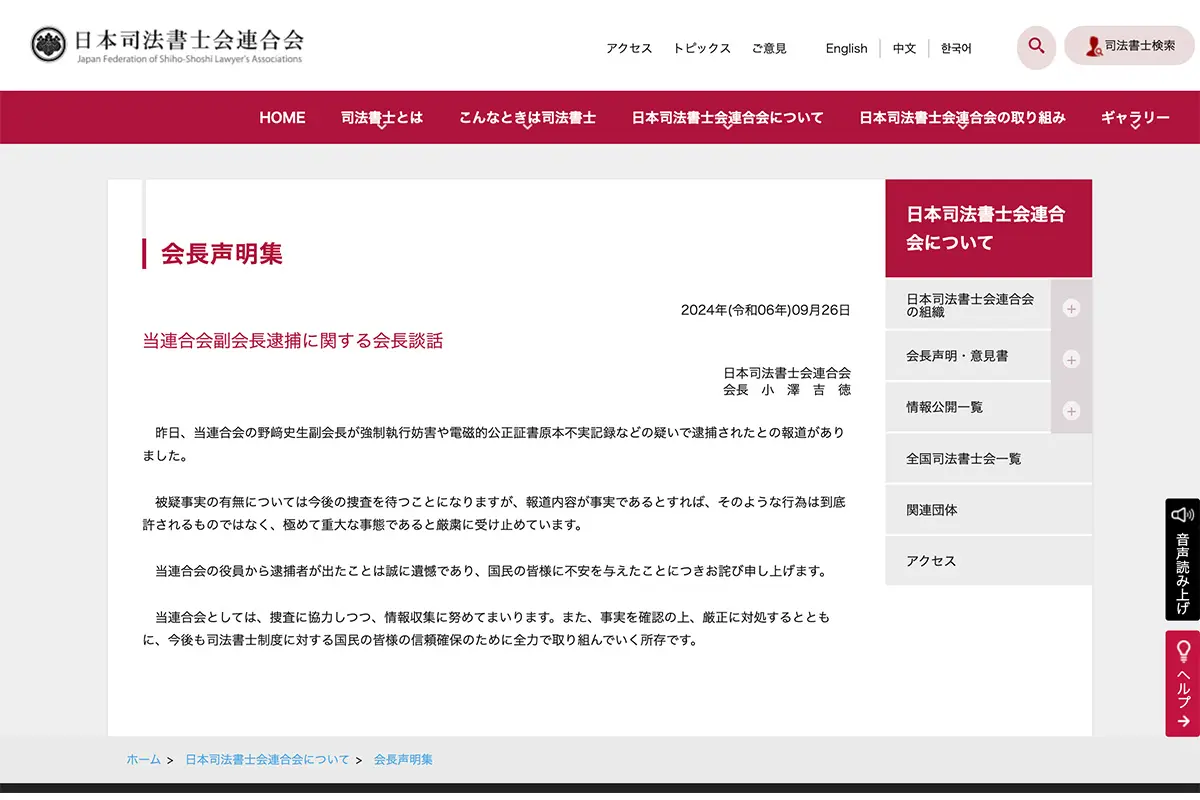 女性自身TOP > 芸能 > エンタメニュース > タレント > 羽賀研二 > 「エグすぎ」羽賀研二と共に逮捕された“超大物”に広がる衝撃「稀代のワルより悪そう」 > 「エグすぎ」羽賀研二と共に逮捕された“超大物”に広がる衝撃「稀代のワルより悪そう」の画像・写真2枚目 「エグすぎ」羽賀研二と共に逮捕された“超大物”に広がる衝撃「稀代のワルより悪そう」 記事投稿日:2024/09/28 06:00 最終更新日:2024/09/28 06:00 日本司法書士会が出した緊急談話 この写真の記事へ こちらの写真もおすすめ