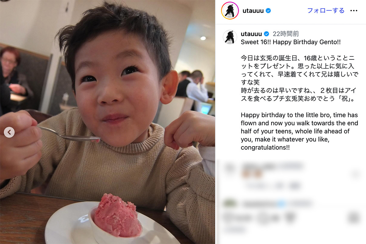 女性自身TOP > 芸能 > エンタメニュース > 男優 > 本木雅弘 > 「おばあちゃまに似てる」還暦イケメン俳優の16歳次男の近影が衝撃!190cmモデル長男との“兄弟の絆”に反響 「おばあちゃまに似てる」還暦イケメン俳優の16歳次男の近影が衝撃!190cmモデル長男との“兄弟の絆”に反響 記事投稿日:2026/03/26 18:50 最終更新日:2026/03/26 20:22 『女性自身』編集部 本木雅弘(写真:本誌写真部) 《Sweet 16!! Happy Birthday Gento!!》3月25日、自身のInstagramでこう祝福の言葉を綴ったのは俳優・本木雅弘(60)の長男で、190cmの長身モデルとして活躍するUTA(28)。16歳の誕生日を迎えた弟・玄兎(げんと)さんの近影を公開し、ネット上で大きな反響を呼んでいる。1995年に女優・樹木希林さん(享年75)と、歌手・内田裕也... 記事の続きを読む 出典元:WEB女性自身 【関連画像】 【関連記事】 【写真あり】「おばあちゃまに似てる」と話題!還暦イケメン俳優の16歳次男の近影 【写真あり】本木雅弘夫妻のゴージャス家族夕食会を目撃! 【写真あり】嫌いなMCランキング 3位関口宏、2位太田光を抑えた圧倒的1位は? 関連カテゴリー: 芸能 エンタメニュース 関連タグ: UTA兄弟息子本木雅弘男優 こちらの記事もおすすめ 芸能 もっと見る 「底辺に俺がいますよ!」元ジャンポケ・斉藤慎二被告 公判中もバームクーヘン販... 2026/03/26 19:15 エンタメニュース 「おばあちゃまに似てる」還暦イケメン俳優の16歳次男の近影が衝撃!190cm... 2026/03/26 18:50 エンタメニュース 「人生濃すぎる」万引き逮捕の坂口杏里 パパ活、ファンに金の無心、セクシー女優... 2026/03/26 17:00 エンタメニュース 《本日誕生日》丸山桂里奈 7℃の極寒&小雨が降るなか…仕事と育児の合間に大切... 2026/03/26 16:00 エンタメニュース 「亡くなった人をネタにするなんて…」前山剛久 神田沙也加さんへの“開き直り動... 2026/03/26 14:00 エンタメニュース 「だらしない」と批判も…宮沢りえ 肩ひもずり落ち、タトゥー露出の“大胆ファッ... 2026/03/26 11:00 エンタメニュース 人気タグ 坂口杏里羽賀研二宮沢りえ2025ベストスクープAIモデル20th CenturyBEGIN2PMATMD-BOYS24時間テレビ5類感染症 カテゴリー 芸能 エンタメニュースインタビュー 皇室国内海外 海外ニュース韓流ニュース スポーツライフ 美容健康暮らしグルメ 地域コラム占い
