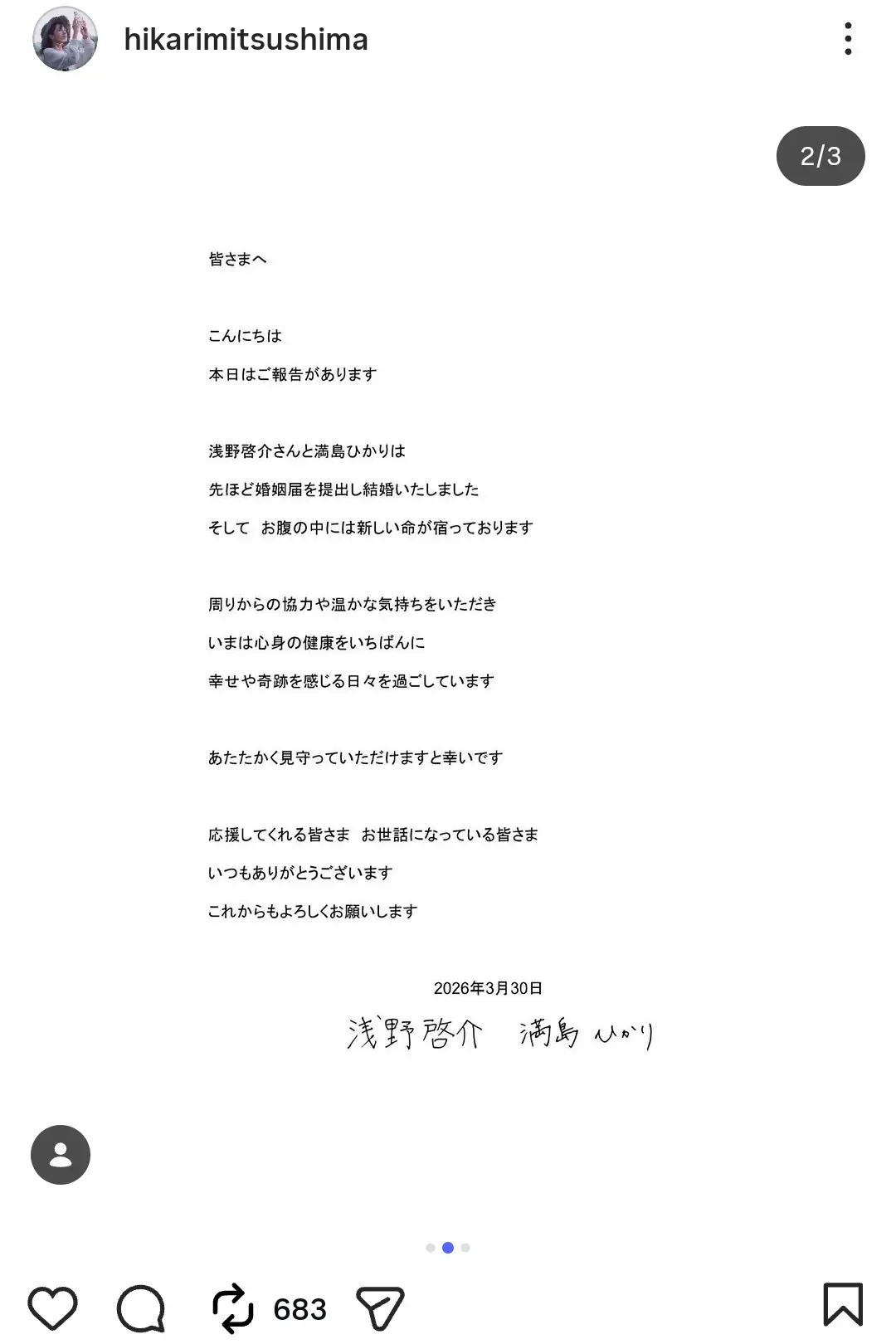 女性自身TOP > 芸能 > エンタメニュース > 女優 > 満島ひかり > 「デキちゃったほうがいい」満島ひかりが再婚&妊娠を発表…前夫との離婚後に明かしていた“独特な結婚観” > 「デキちゃったほうがいい」満島ひかりが再婚&妊娠を発表…前夫との離婚後に明かしていた“独特な結婚観”の画像・写真2枚目 「デキちゃったほうがいい」満島ひかりが再婚&妊娠を発表…前夫との離婚後に明かしていた“独特な結婚観” 記事投稿日:2026/03/30 18:10 最終更新日:2026/03/30 19:42 満島ひかりが結婚を発表した32歳“イケメン”モデル(浅野啓介のインスタグラムより) この写真の記事へ こちらの写真もおすすめ