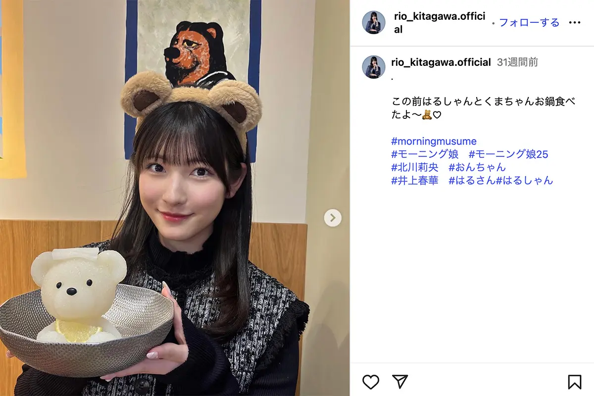 「北川さんは昨年1月、男性と顔を寄せ合うように密着したツーショットやプリクラが流出。ブログで《私、北川莉央で間違いありません》と認めつつ、一緒に写っているのは大学の友人だと釈明しました。