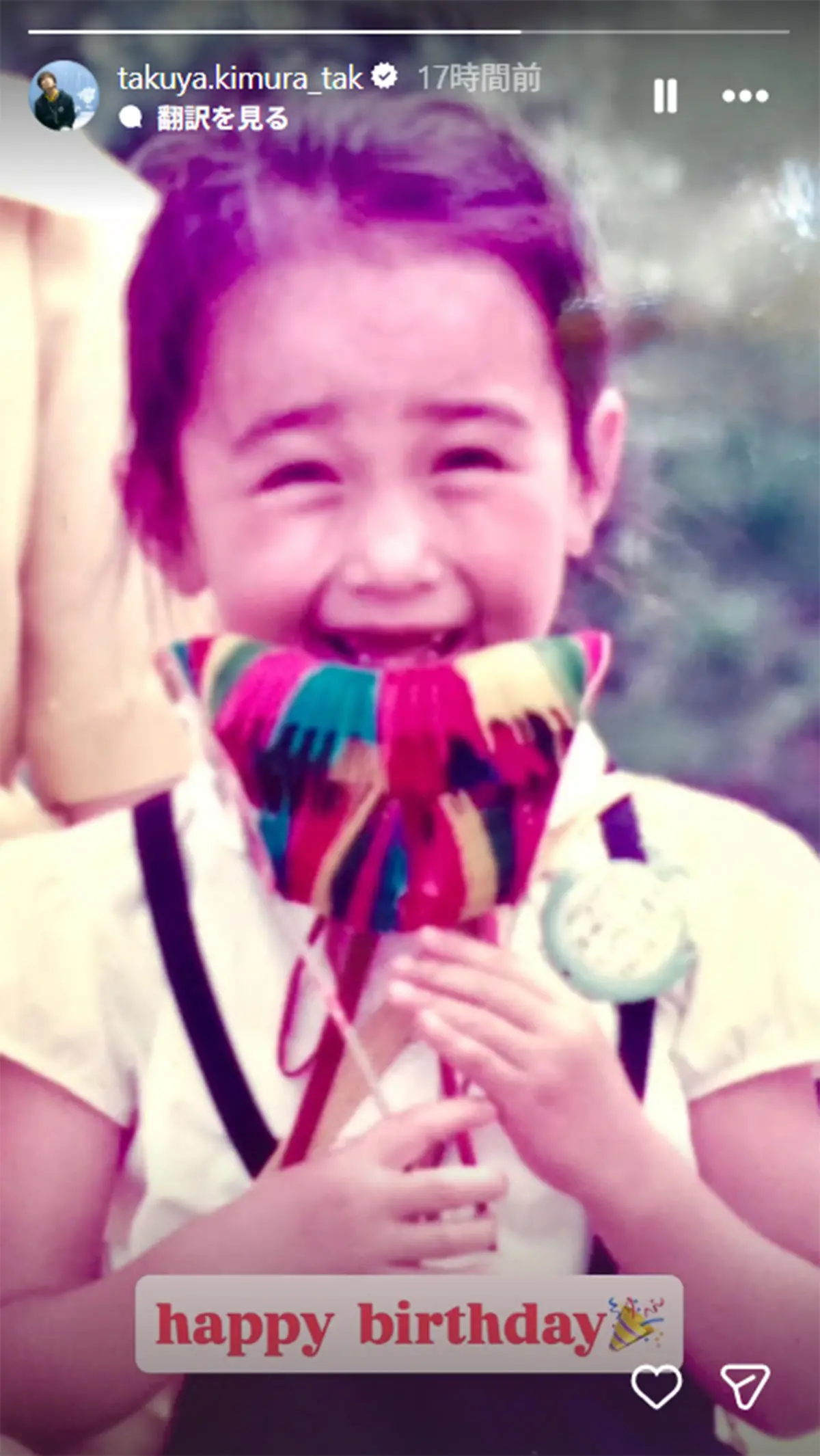 女性自身TOP > 芸能 > エンタメニュース > 男性アイドル > 木村拓哉 > 木村拓哉が工藤静香の誕生日に“家族写真”公開…始まりは中国SNSでの“伝説ツーショット” 木村拓哉が工藤静香の誕生日に“家族写真”公開…始まりは中国SNSでの“伝説ツーショット” 記事投稿日:2026/04/15 18:35 最終更新日:2026/04/15 18:35 『女性自身』編集部 木村拓哉・工藤静香(写真:本誌写真部) プライベート公開の始まりは、中国SNSでの“伝説のツーショット”だった――。4月14日、俳優の木村拓哉(53)がInstagramのストーリーズを更新。今年も、妻で歌手の工藤静香(56)の誕生日に合わせて家族にまつわる写真を公開し、話題を呼んでいる。今回公開されたのは、幼少期の工藤の写真。目を細めて幸せそうに笑う姿に、《happy birthday》のメッセージが添えら... 記事の続きを読む 出典元:WEB女性自身 【関連画像】 【関連記事】 【写真あり】木村拓哉 吉野家アンバサダー就任も…次女・Kokiがしていた「衝撃の発言」 【写真あり】《机をバンと叩く場面も》工藤静香 イライラ全開レコーディングの背景に「CD売り上げ伸び悩み」と「コンサート費用」ダブルの重圧 【写真あり】《母・静香の意向も》Koki, 映画大コケも次の主演作品が内定…女優不振で共演頼る「大人気STARTOアイドル」 関連カテゴリー: 芸能 エンタメニュース 関連タグ: Instagram工藤静香木村拓哉男性アイドル こちらの記事もおすすめ 芸能 もっと見る 「変なジジィ」と逆ギレも…人気夫婦YouTuber 新幹線・グリーン車内で撮... 2026/04/15 18:55 エンタメニュース 木村拓哉が工藤静香の誕生日に“家族写真”公開…始まりは中国SNSでの“伝説ツ... 2026/04/15 18:35 エンタメニュース 「聞く耳を持たない人はとりあえず距離を置こう」羽生結弦の元妻バイオリニスト ... 2026/04/15 18:00 エンタメニュース 「絶対わからないと思う」脚本家・北川悦吏子氏 “懐かしすぎる”ドラマ写真を投... 2026/04/15 17:00 エンタメニュース No.1モテ女性芸人 タイトT×斜めがけバッグ姿の“トイレ自撮り”が「可愛す... 2026/04/15 16:45 エンタメニュース 「孤独だって思う」板野友美 小嶋陽菜の自社株売却で「18億円ゲット」の裏で“... 2026/04/15 16:20 エンタメニュース 人気タグ モナキ大野智坂口杏里AIRBENI30歳まで童貞だと魔法使いになれるらしいCBXBiS2021ベストスクープCHERRSEEBABYMETALABCテレビ カテゴリー 芸能 エンタメニュースインタビュー 皇室国内海外 海外ニュース韓流ニュース スポーツライフ 美容健康暮らしグルメ コミックコラム占い