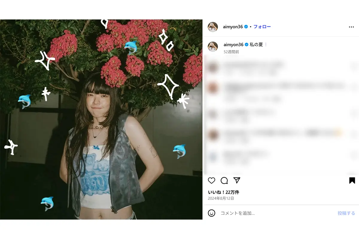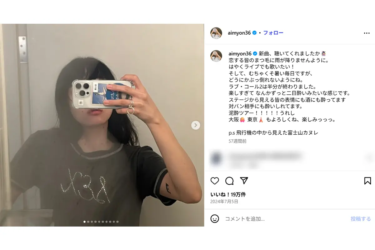 女性自身TOP > 芸能 > エンタメニュース > あいみょん > 「入れてるのはがっかり」「何を今さら」あいみょん 再びタトゥーまる出し…ネットは賛否真っ二つ > 「入れてるのはがっかり」「何を今さら」あいみょん 再びタトゥーまる出し…ネットは賛否真っ二つの画像・写真3枚目 「入れてるのはがっかり」「何を今さら」あいみょん 再びタトゥーまる出し…ネットは賛否真っ二つ 記事投稿日:2026/04/17 18:50 最終更新日:2026/04/17 20:22 「なんか増えてない?」とネット衝撃…あいみょんのタトゥーまる出し姿(あいみょんの公式インスタグラムより) この写真の記事へ こちらの写真もおすすめ