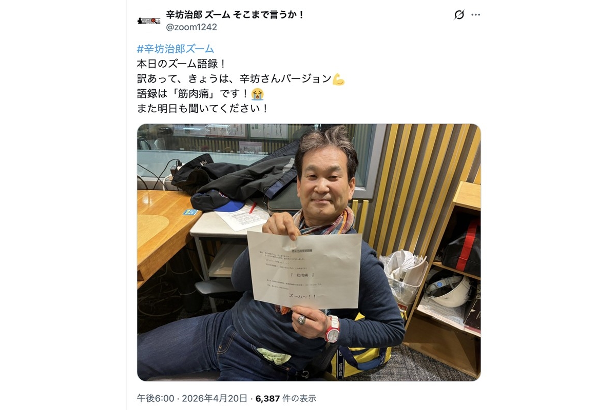 女性自身TOP > 芸能 > エンタメニュース > アナウンサー > 辛坊治郎 > 「現代社会にはそぐわない」辛坊治郎氏 ラジオでの「愚妻」発言に賛否勃発…“本来の意味”に「女性差別とは関係ない」の声も 「現代社会にはそぐわない」辛坊治郎氏 ラジオでの「愚妻」発言に賛否勃発…“本来の意味”に「女性差別とは関係ない」の声も 記事投稿日:2026/04/22 19:00 最終更新日:2026/04/22 20:32 『女性自身』編集部 辛坊治郎氏(ニッポン放送の公式サイトより) 4月20日放送のラジオ番組『辛坊治郎ズーム そこまで言うか!』(ニッポン放送)で、パーソナリティの辛坊治郎氏(70)が発した“ある言葉”をめぐってSNSで議論が起きている。番組のオープニングトークで、桜の季節にちなんで「私にとっては、あと何回、スノーボードに春先行けて、筋肉痛にいったい何歳までなるんだろうか」と漏らした辛坊氏。同局の増山さやかアナウンサー(59)が「実験... 記事の続きを読む 出典元:WEB女性自身 【関連画像】 【関連記事】 【写真あり】武田鉄矢 田中律子への「立派なおばさん」発言が波紋…過去に顰蹙買ったテレビ局の表彰式で「パワハラ暴露」 【写真あり】太田光 高市首相への“イジワル質問”の裏で4年前の“炎上”が再燃…光代社長が本誌に明かしていた「ご愁傷様」発言の真意 【写真あり】「炎上狙いかな?」の声も…中丸雄一 生放送で“ババア”発言が波紋 復帰後の“キャラ変”に漂う不安感 関連カテゴリー: 芸能 エンタメニュース 関連タグ: アナウンサーニッポン放送発言辛坊治郎 こちらの記事もおすすめ 芸能 もっと見る 「余裕で結末わかってた」宮崎麗果氏の“離婚協議”報道に元夫が反応…語られた“... 2026/04/22 19:17 エンタメニュース 「心は静かに傷ついていた」三吉彩花 タトゥー決断に激しい賛否も…語っていた厳... 2026/04/22 19:10 エンタメニュース 「現代社会にはそぐわない」辛坊治郎氏 ラジオでの「愚妻」発言に賛否勃発…“本... 2026/04/22 19:00 エンタメニュース 「都会に染まっちゃったのかな」の指摘も…王林 ビジュに違和感を覚える人の“心... 2026/04/22 18:05 エンタメニュース 「まるで事件がなかったかのような…」宮崎麗果氏に“離婚協議“報道…関係者に見... 2026/04/22 16:56 エンタメニュース 《夫は夫婦写真を削除》宮﨑麗果氏 黒木啓司氏と“離婚協議”報道…有料SNSで... 2026/04/22 16:31 エンタメニュース 人気タグ 愛子さま小野田紀美多部未華子5urpriseCharAdoA.B.C-Z100万円CMソング24時間テレビ2000年代2拠点生活 カテゴリー 芸能 エンタメニュースインタビュー 皇室国内海外 海外ニュース韓流ニュース スポーツライフ 美容健康暮らしグルメ コミックコラム占い