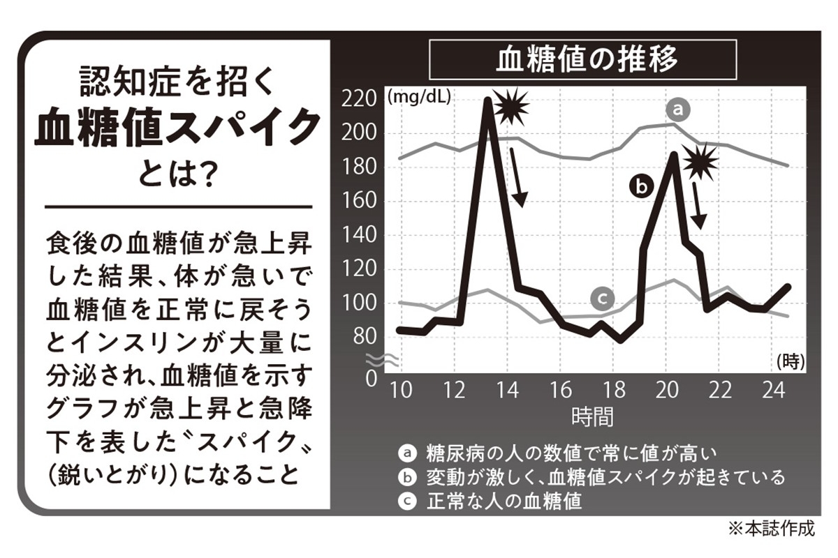 「食後1~2時間で急激に眠たくなる人は、血糖値スパイクを起こしている可能性があります。血糖値スパイクは“隠れ糖尿病”といわれ、健診では見つけにくい。さらに近年、血糖値スパイクが認知症リスクを高めると指摘する医療論文が発表されています」こう語るのは、金沢大学脳神経内科の准教授・篠原もえ子医師だ。まずは血糖値スパイクについて、NOBUヘルシーライフ内科クリニック(東京都)院...