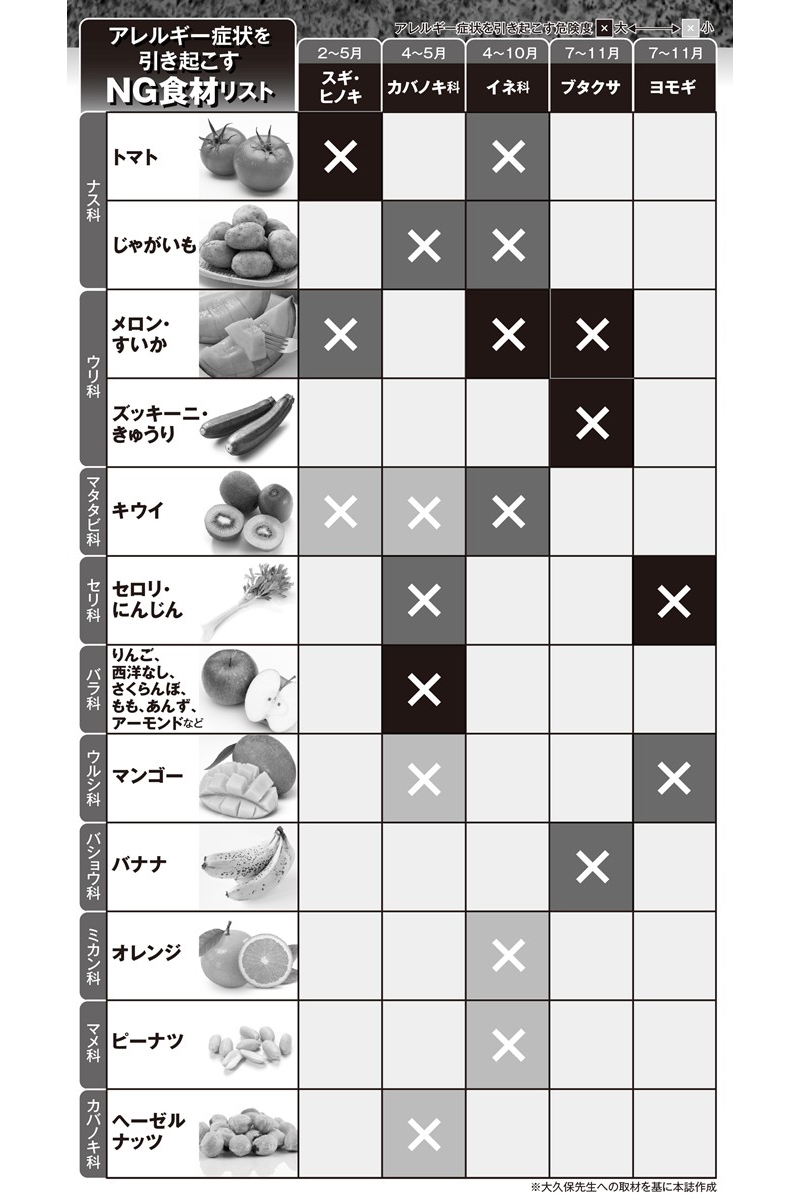 女性自身TOP > ライフ > 健康 > 花粉症 > 《花粉症に“悪影響”の意外な食材》スギ花粉症患者が“トマトを食べてはいけない”ワケ 《花粉症に“悪影響”の意外な食材》スギ花粉症患者が“トマトを食べてはいけない”ワケ 記事投稿日:2026/04/02 11:00 最終更新日:2026/04/02 11:00 『女性自身』編集部 (写真:polkadot/PIXTA) 花粉の飛散がピークを迎えている。鼻アレルギーの全国疫学調査によれば、花粉症の有病率は’19年に42.5%にものぼっている。半数近くの日本人が、目のかゆみや止まらない鼻水、くしゃみといった症状に苦しんでいることになる。ただでさえつらい症状に加え、厄介なのは、花粉症が原因で発症しうるアレルギーの存在だ。「食べ物に含まれているタンパク質には、アレルギー反応を起こす花粉のタンパ... 記事の続きを読む 出典元:「女性自身」2026年4月7日号 【関連画像】 【関連記事】 【写真あり】「花粉症薬のやってはいけないNG飲み合わせ10パターン」薬剤師が警鐘…思わぬ落とし穴 【写真あり】「噂の“花粉症”対策」重症の3人が試してみたら…《本気で効いたものだけジャッジ》 【写真あり】「痛くない鼻うがい」医師に聞いた“効果ばつぐん”の正しい花粉症対策がスゴい! 関連カテゴリー: ライフ 健康 関連タグ: PFAS花粉症解説 こちらの記事もおすすめ ライフ もっと見る 《花粉症に“悪影響”の意外な食材》スギ花粉症患者が“トマトを食べてはいけない... 2026/04/02 11:00 健康 “賢いパートタイム勤務の裏技”よくある質問5選《家計のプロが徹底解説》 2026/03/25 11:00 暮らし 「年収の壁」家計のプロが徹底解説!《今さら聞けない110万の壁、130万の壁... 2026/03/25 11:00 暮らし 賃貸物件に“定期借家”が急増しているワケ《経済のプロ荻原博子が徹底解説》 2026/03/20 11:00 暮らし 「食後すぐに眠くなる人」におすすめの方法5選《医師監修の血糖値スパイク対処法... 2026/03/19 11:00 健康 「寝室が明るい人は心筋梗塞のリスクが5割増」!?実は心臓によくない生活習慣8... 2026/03/18 11:00 健康 人気タグ 中居正広長谷川京子坂口杏里B&ZAIbayfm326C型肝炎AndroidAKB総選挙2025年上半期ベストスクープ2025ベストスクープD.O. カテゴリー 芸能 エンタメニュースインタビュー 皇室国内海外 海外ニュース韓流ニュース スポーツライフ 美容健康暮らしグルメ 地域コラム占い